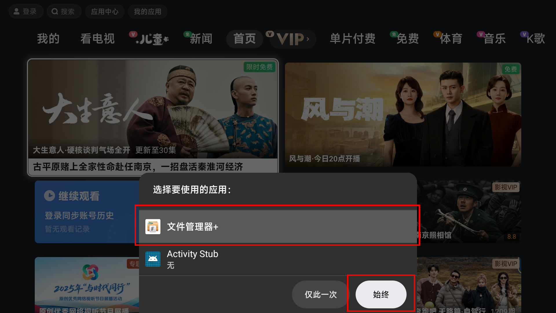 如果要使用此方法,请保证你的盒子系统中只有一个拥有文件选择功能的应用